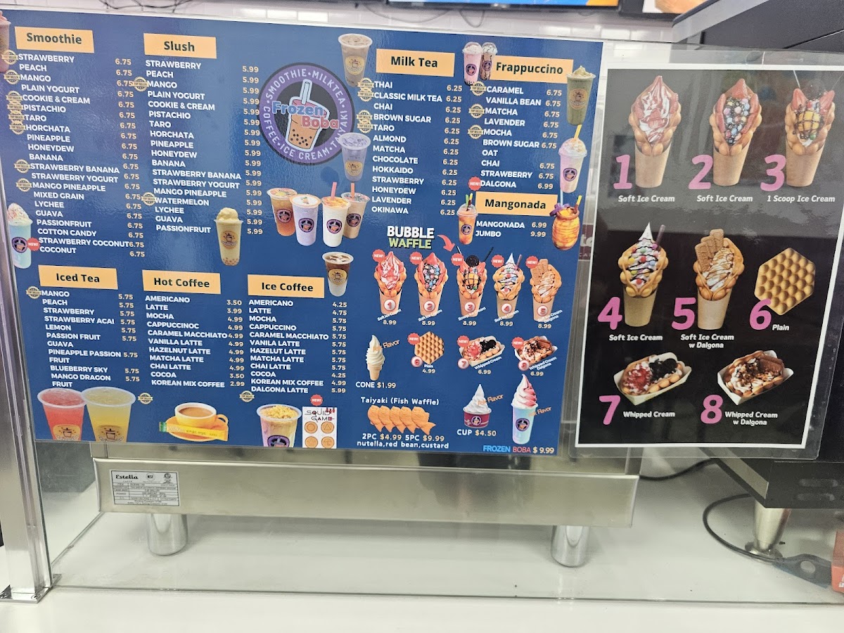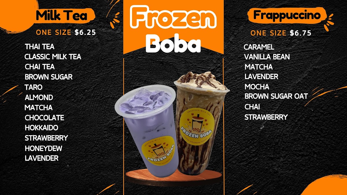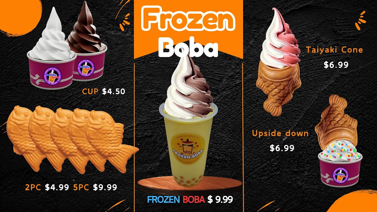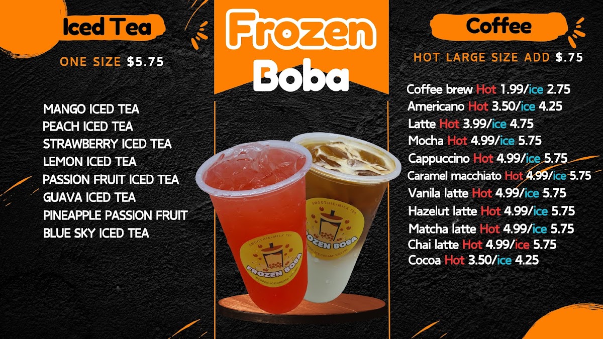 Welcome to FROZEN BOBA, a delightful cafe located at 23561 Avalon Blvd, Carson, CA. This charming spot is renowned for its unique offerings, particularly the Taiyaki, a delicious fish-shaped pastry filled with sweet delights like Nutella, priced at $6.49 for two pieces. Customers rave about the variety of Frappuccinos, including enticing flavors like Mocha and Matcha, each at $8.24. For those seeking a caffeine boost, their impressive selection of iced coffees, including the Caramel Macchiato and Chai Latte, ranges from $5.74 to $7.50.